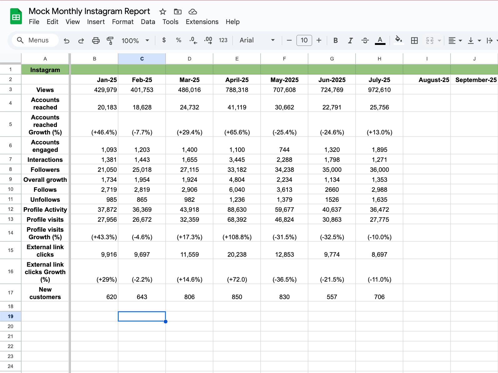 * Follower Growth: +17,000 followers (from 20k to 37k).